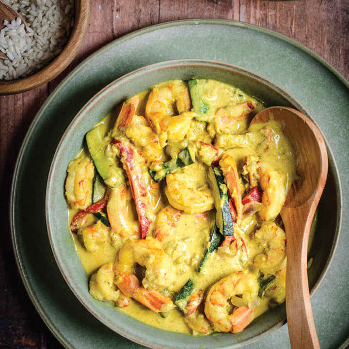 CURRY CREMOSO DE CAMARONES CON LECHE DE COCO