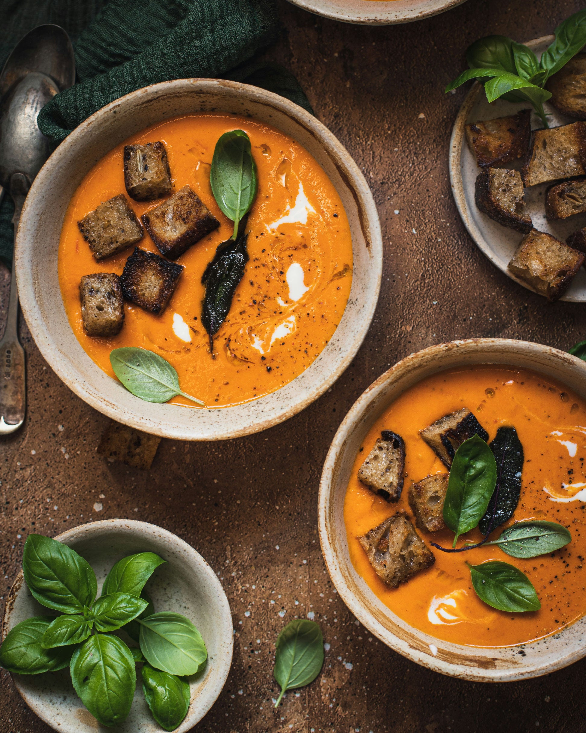 SOPA DE TOMATE ROSTIZADO CON ALBAHACA ORGÁNICA